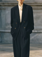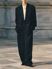 90s Minimalist Commuter Shoulder Padded Blazer & Loose Straight Pants Set