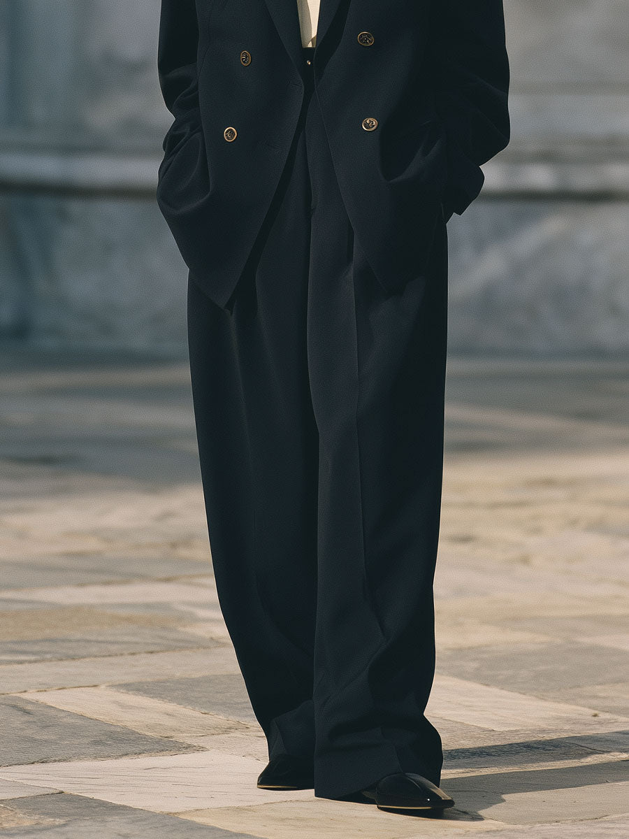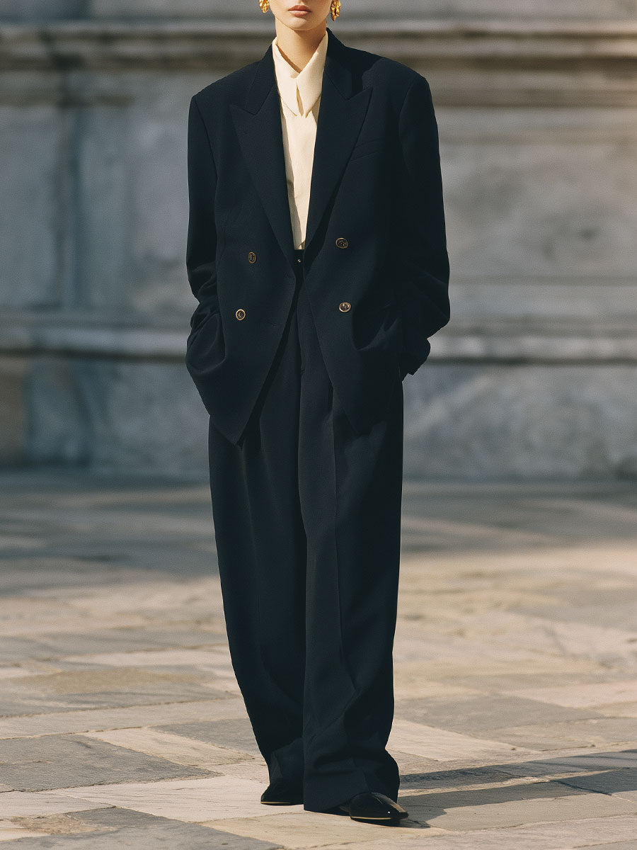 • Loose Straight Pants: Complementing the blazer, the pants offer a relaxed fit with a straight cut, providing comfort and a sleek, elongated look.