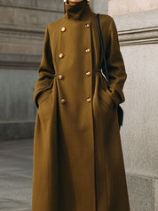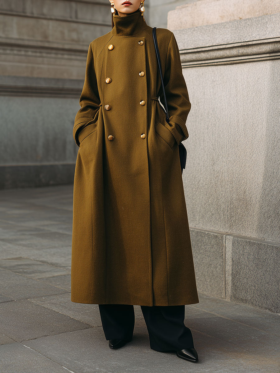 90s Minimalist High Collar Double Breasted Woolen Coat With Diagonal Placket