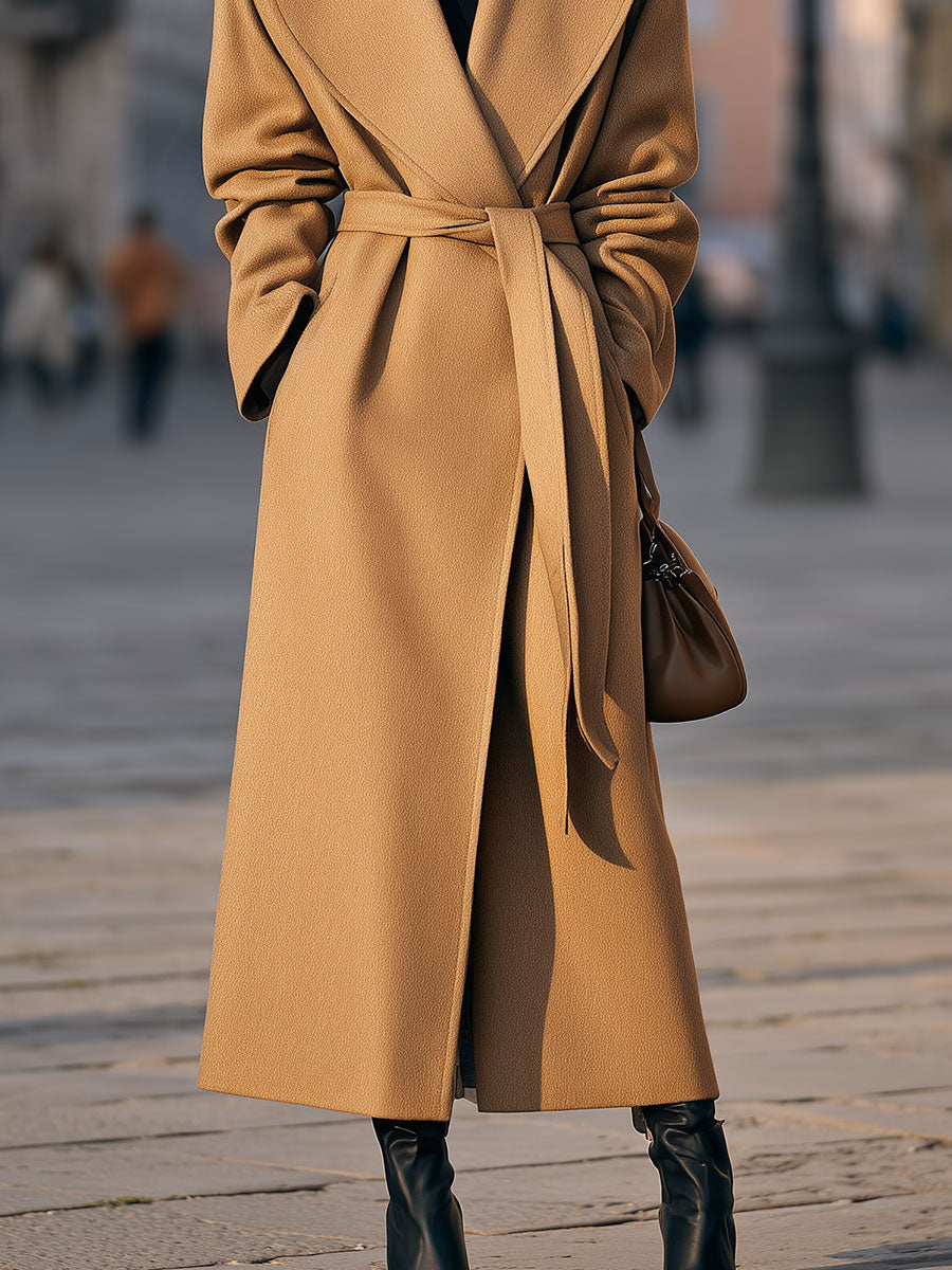 This timeless 90s-inspired minimalist coat strikes the perfect balance between classic style and modern elegance. The mid-length design adds sophistication, while the belt accentuates the waist for a flattering silhouette. With its versatile appeal, this woolen coat is a wardrobe staple for any occasion.