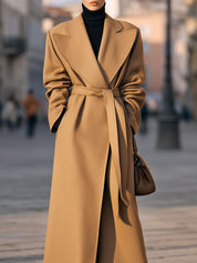 90s Minimalist Lapel Mid-length Woolen Coat With Belt
