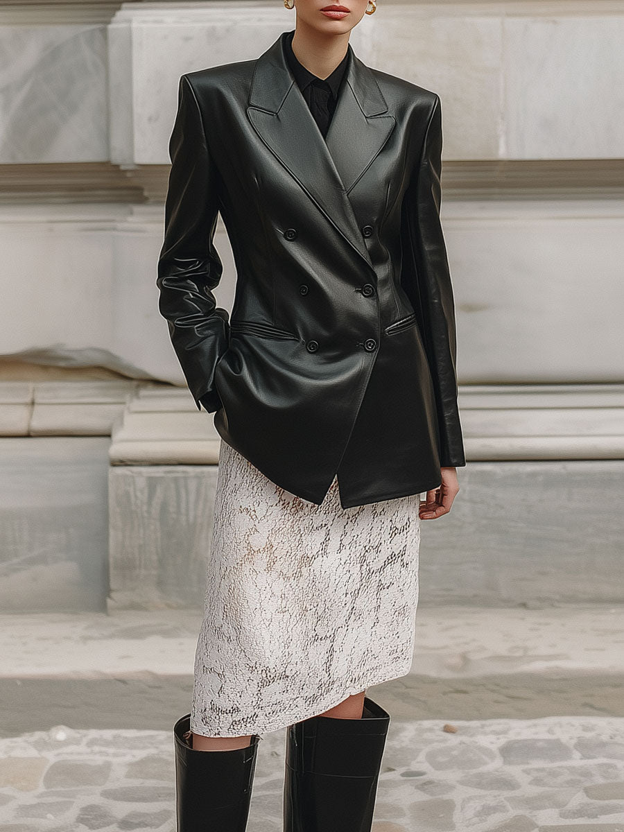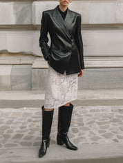 90s Minimalist Commuter Eco-friendly Leather Shoulder Pad Blazer