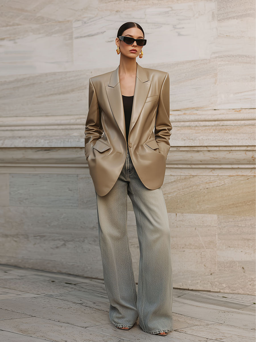 Minimalist Eco-friendly Leather Shoulder Pads Loose Version Blazer