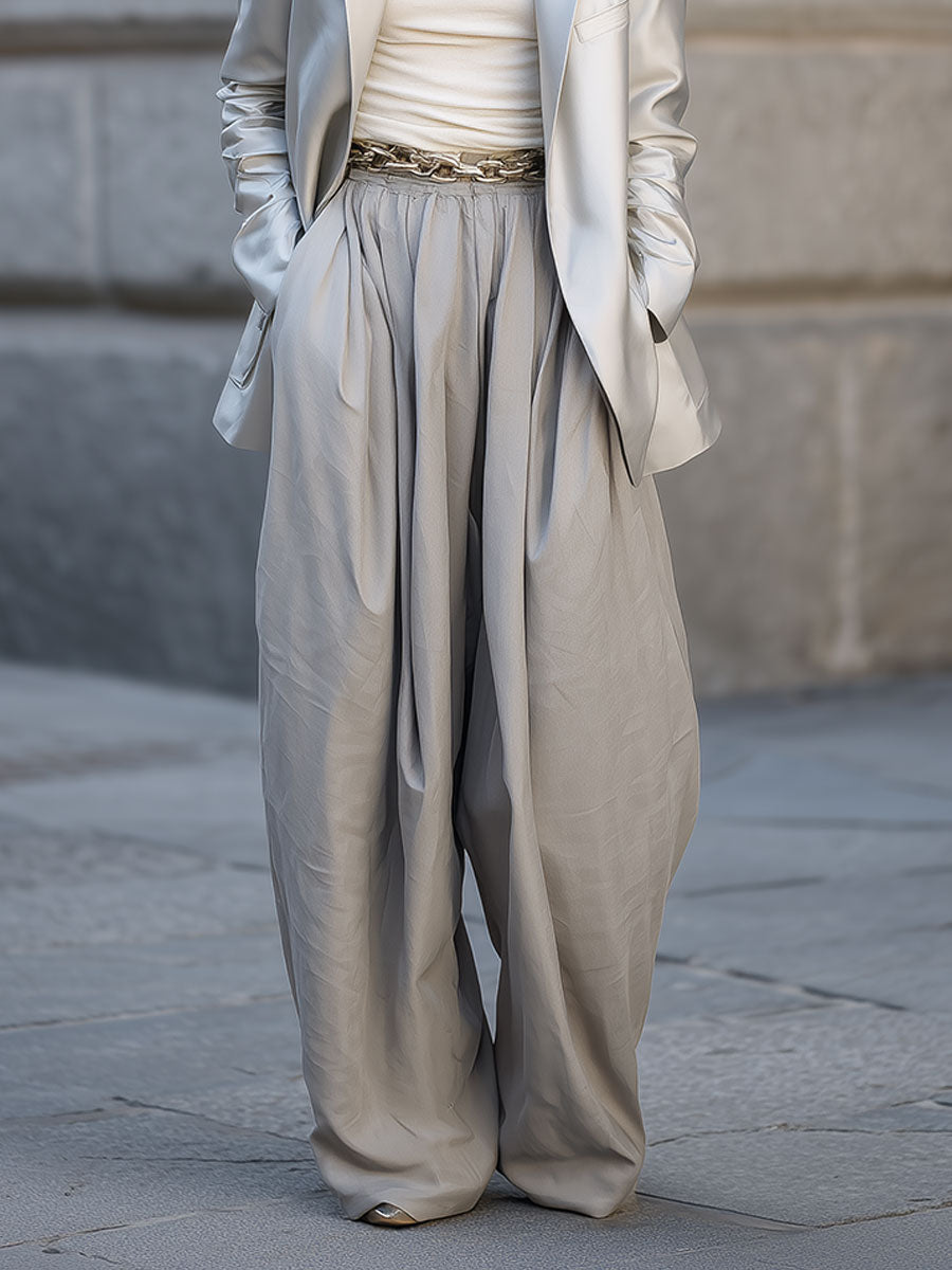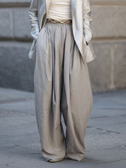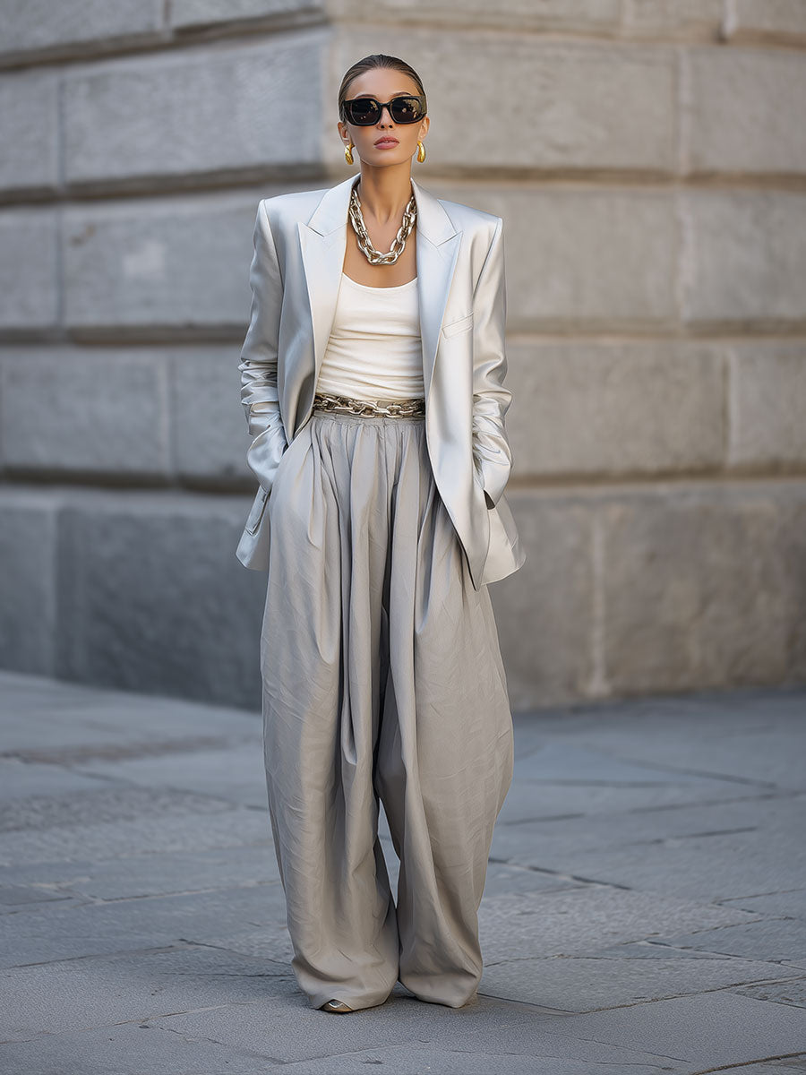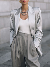 Minimalist Lapel Shoulder Pad Metallic Texture Blazer