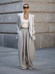 This Minimalist Lapel Shoulder Pad Metallic Texture Blazer is a perfect blend of classic elegance and modern style. Designed with a sleek metallic texture, this blazer showcases a minimalistic approach while adding a subtle shine to your outfit. The structured shoulder pads provide a bold and confident silhouette, making it an ideal choice for both formal and casual occasions.