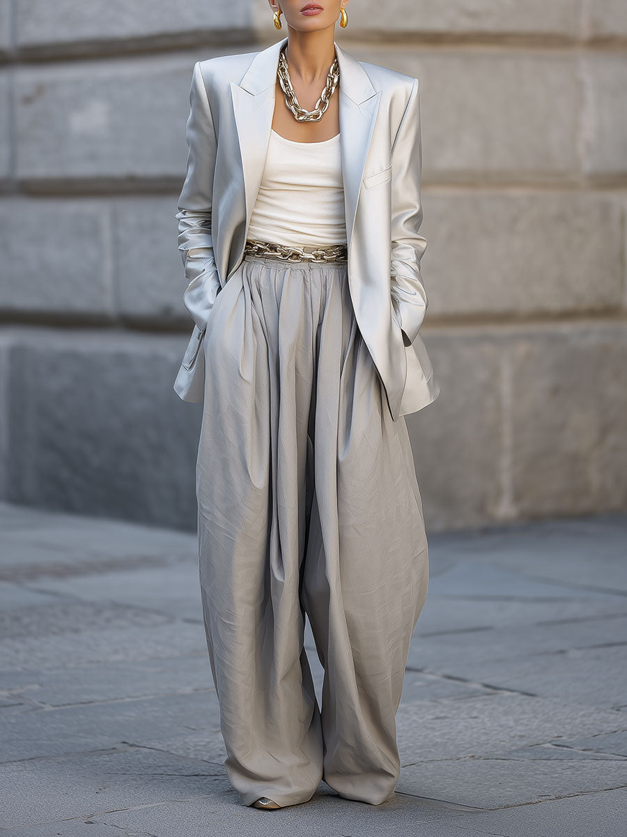 The Minimalist Oversized Pinch Pleated Radish Pants are a standout choice for those looking to add versatility and sophistication to their wardrobe. Their unique design and high-quality construction make them a must-have piece capable of being dressed up or down for any occasion.