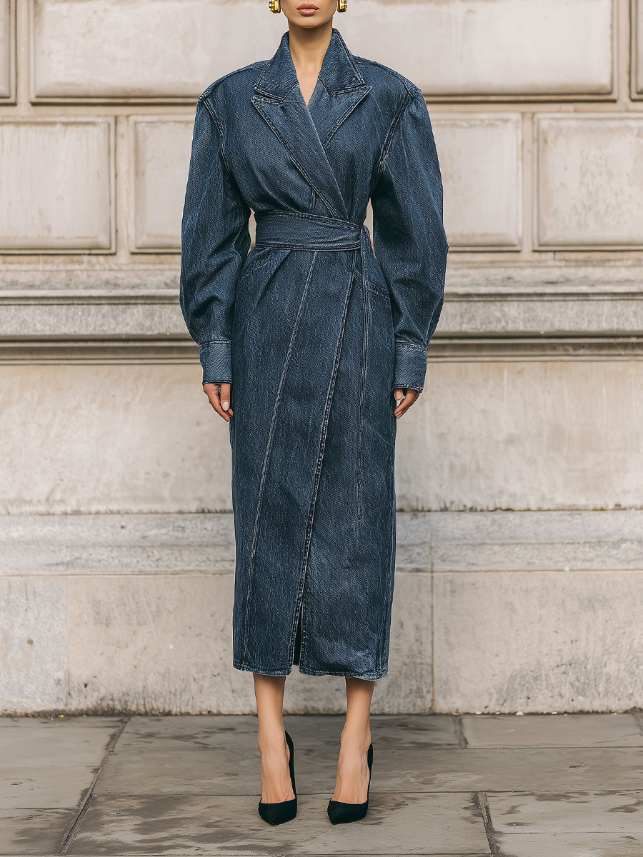 The Casual Deconstructed Acid Wash Denim Diagonal Placket Cocoon Waist Coat With Belt is a must-have for those seeking a standout garment that combines innovation with classic style. Its versatile design and unique features make it a valuable addition to any wardrobe, offering both comfort and a fashion-forward look. Embrace the bold and contemporary with this exceptional coat.