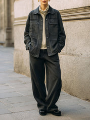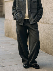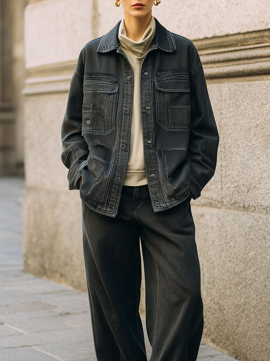 Deconstructed Commuting Washed Denim Jacket & Straight Pants Set