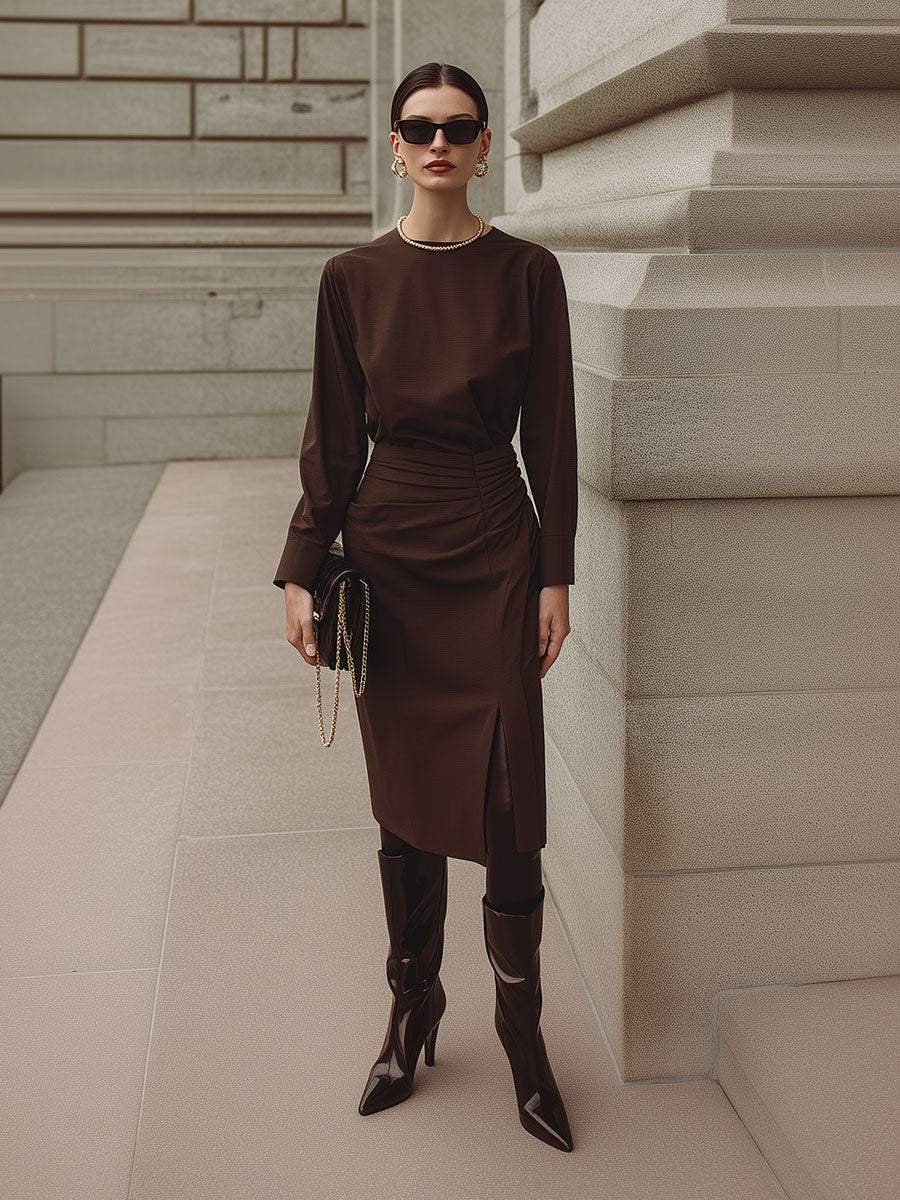 The Deconstructed Pleated Waist Midi Dress with Front Slit is a sophisticated addition to any wardrobe, offering exclusive design elements and versatile styling options. Its elegant construction and contemporary features make it a must-have for fashion-forward individuals looking to make a memorable impression.
