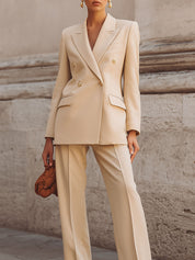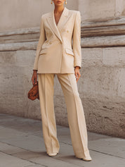 Minimalist Double-breasted Waisted Blazer & Front Seam Straight Pants Set