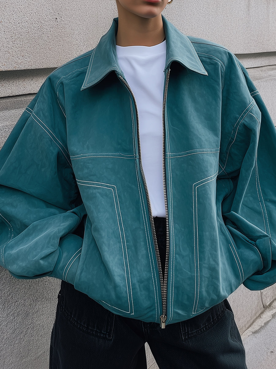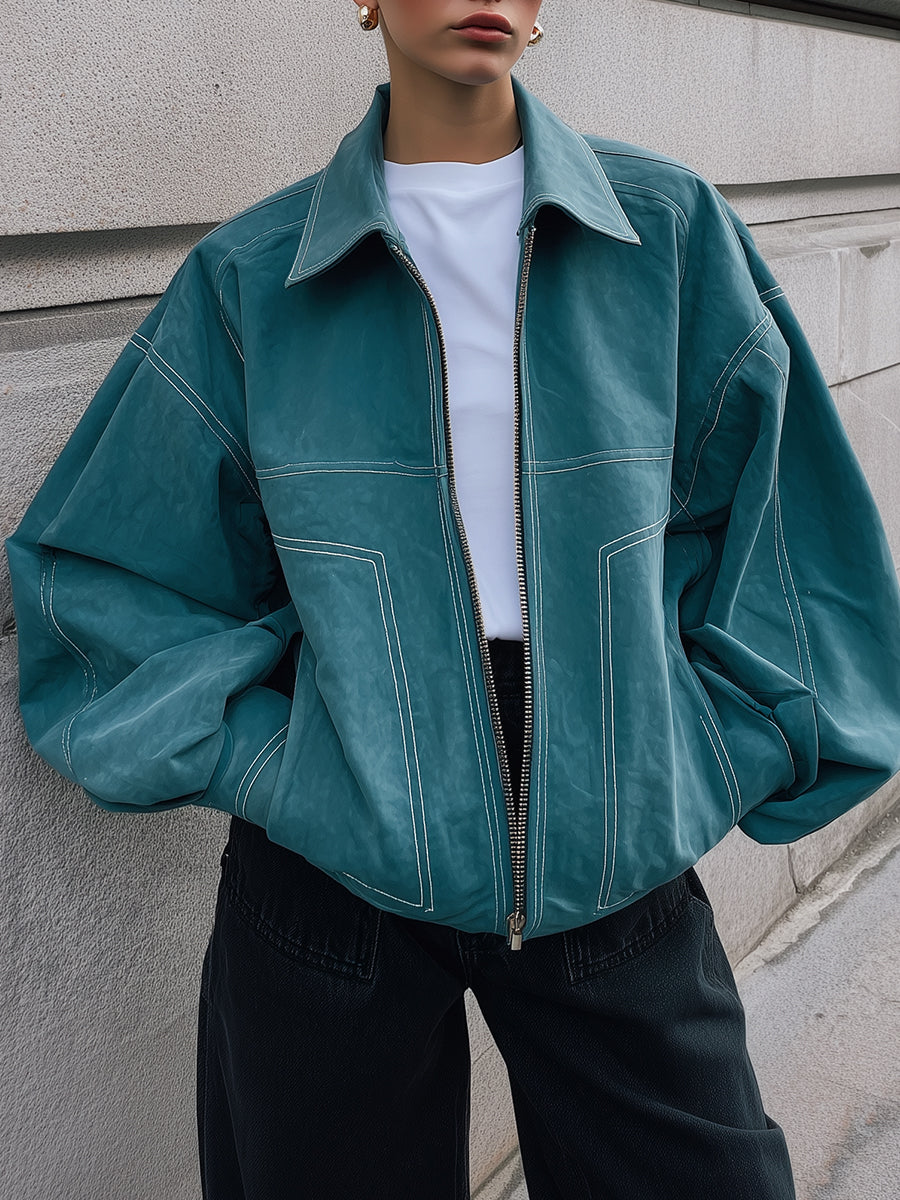 Minimalist Oversized Drop Shoulder Front Zipper Casual Suede Jacket