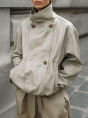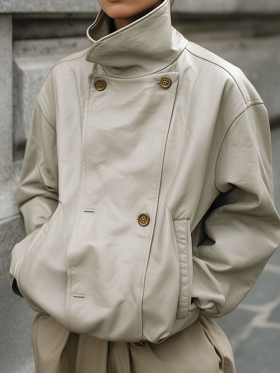 Minimalist Oversized Eco-friendly Leather Off-shoulder Jacket