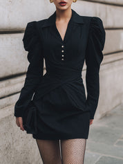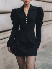 Deconstructed Gigot Sleeve Waist Pleated Mini Dress