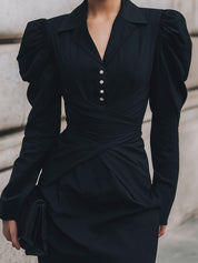 The Deconstructed Gigot Sleeve Waist Pleated Mini Dress is a unique statement piece designed for the contemporary fashionista. This dress combines a classic silhouette with a modern twist, featuring deconstructed gigot sleeves and pleated waist details that enhance your shape and add a touch of elegance.