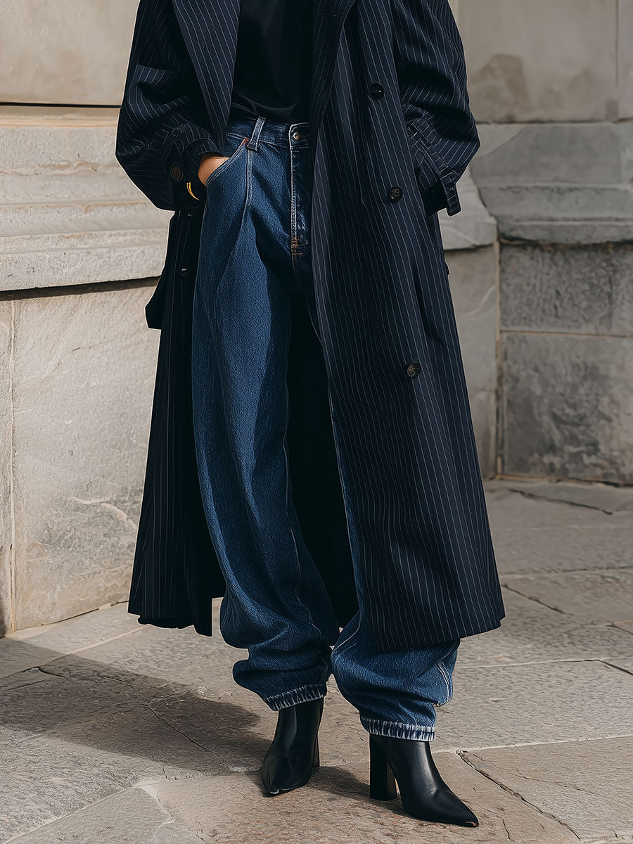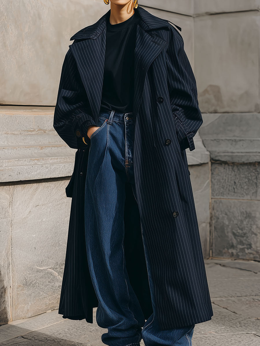 Minimalist Oversized Pinstripe Mid-length Trench Coat