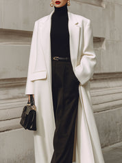 Minimalist Oversized Shoulder-padded Wool Mid-length Coat
