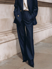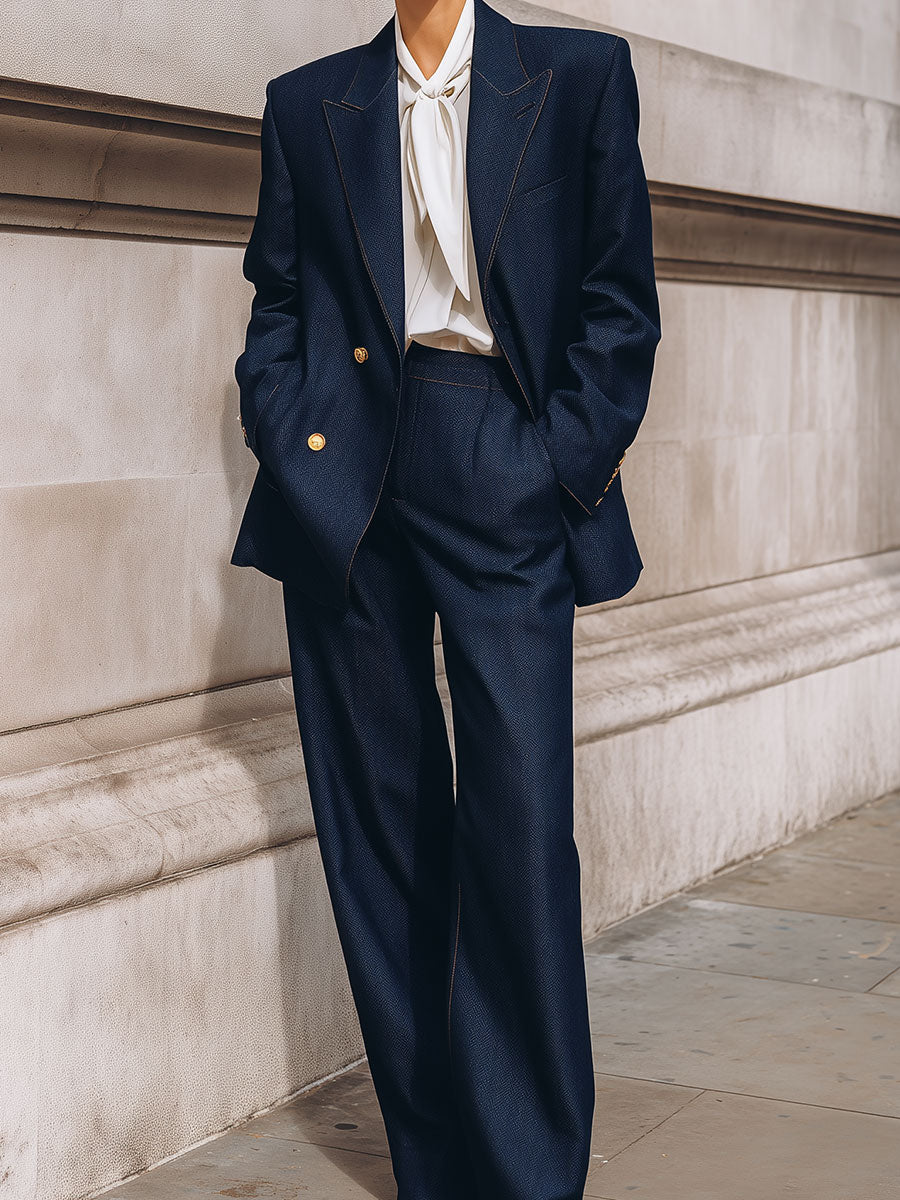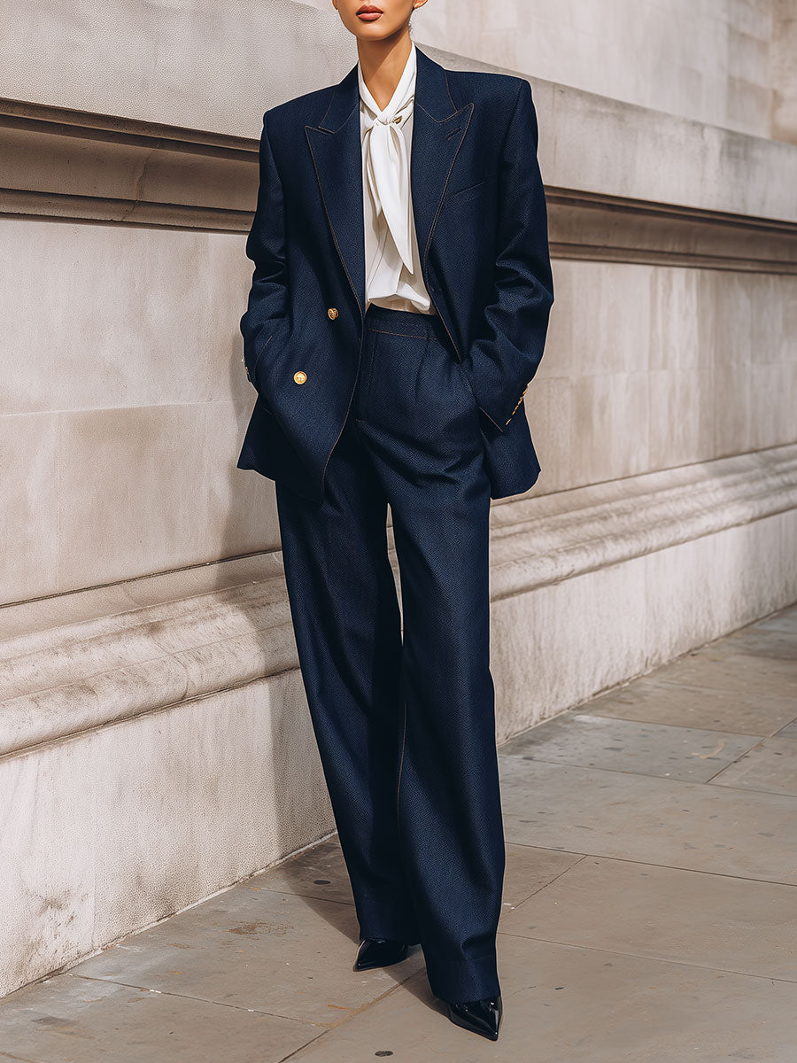 Minimalist Commuter Lapel Denim Blazer & Straight Pants Set