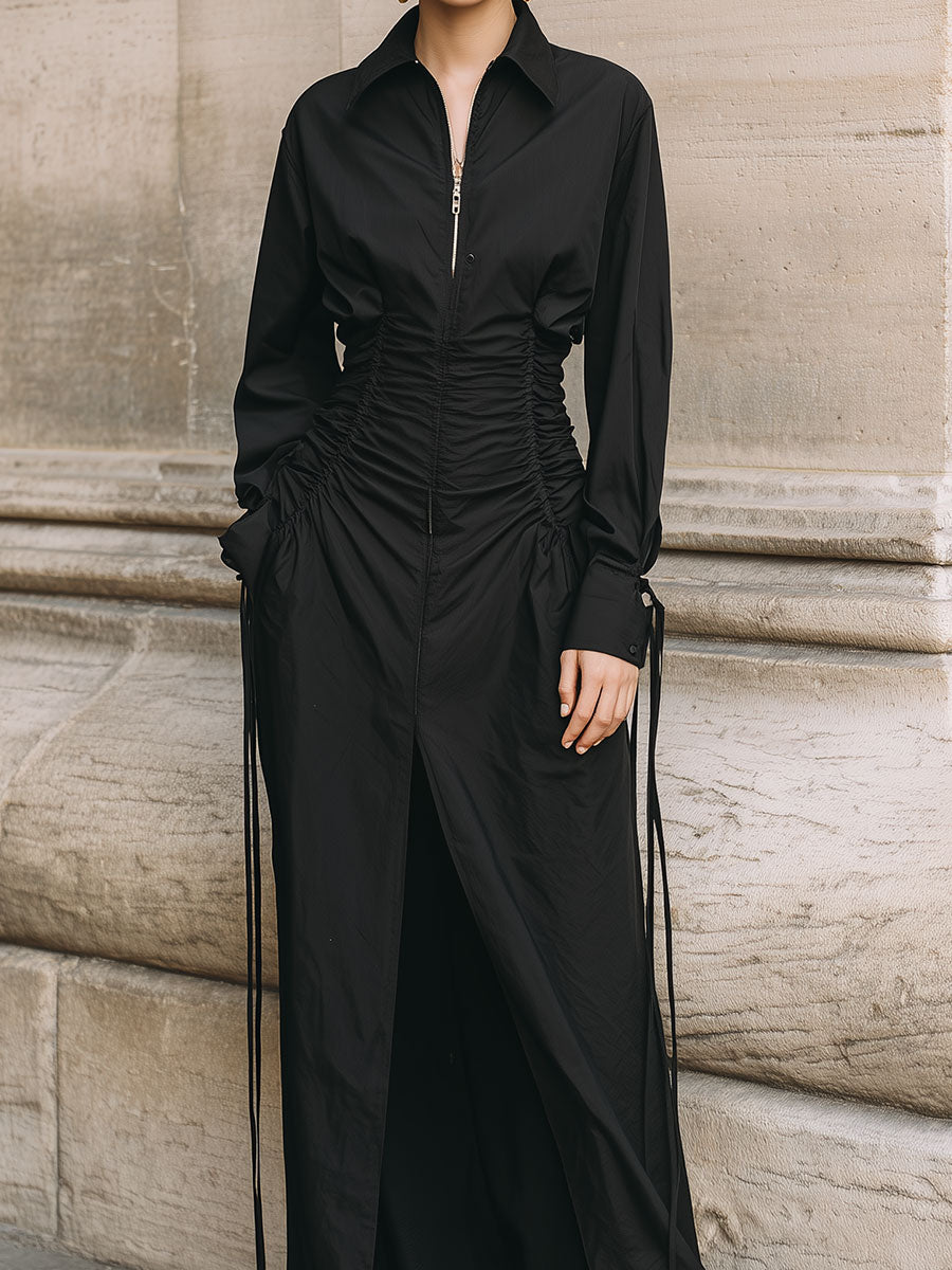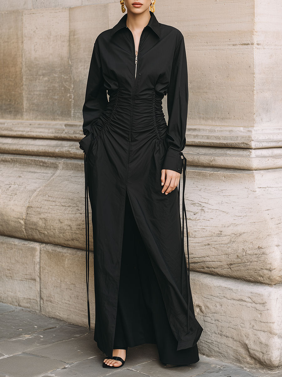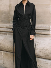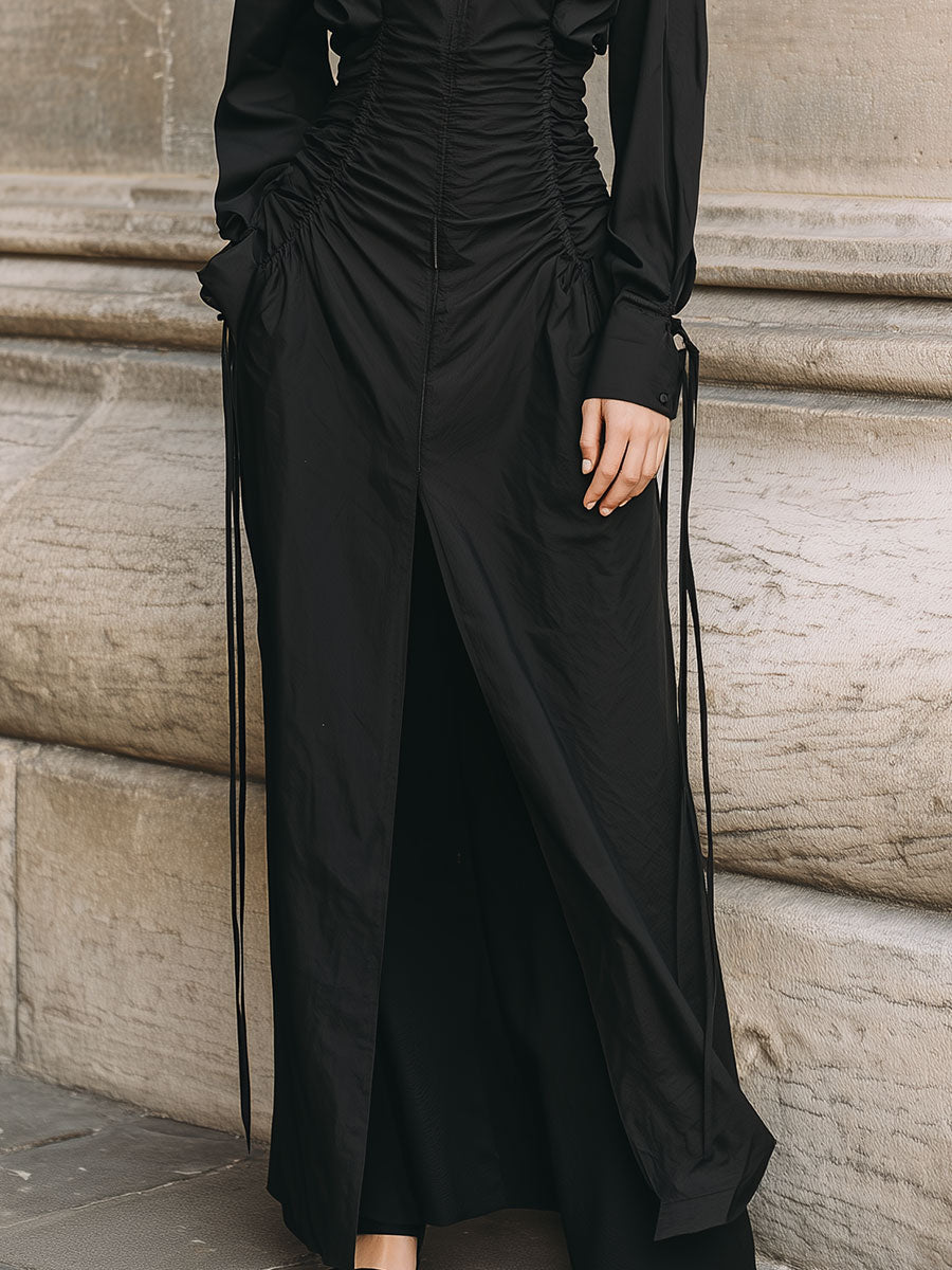 Deconstructed Waist Shirring Maxi Dress With Front Slit