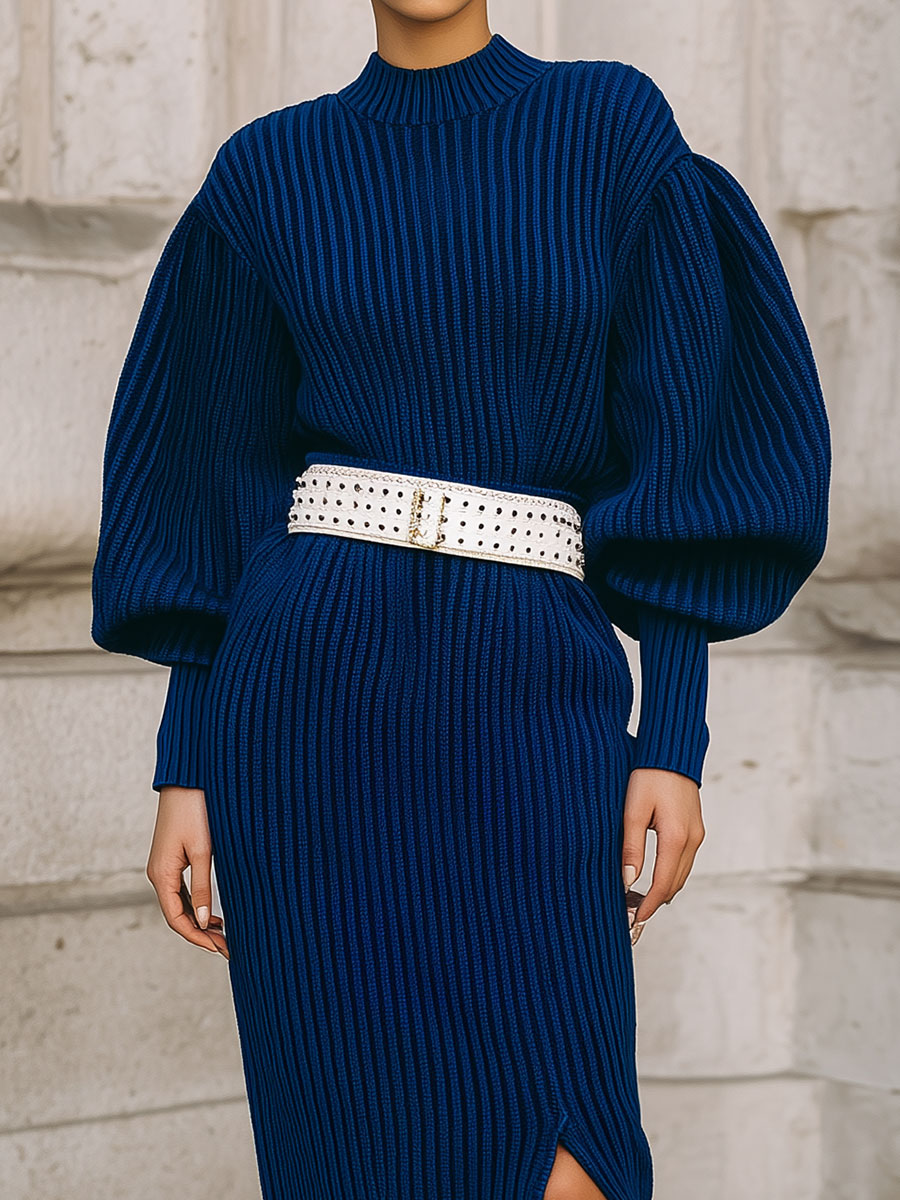 Whether you're headed to a brunch, a business meeting, or a casual evening out, the Minimalist Balloon Sleeves Knitted Hem Slit Midi Dress is a versatile choice that combines comfort with contemporary style. Make it a staple in your closet for effortless chic charm.