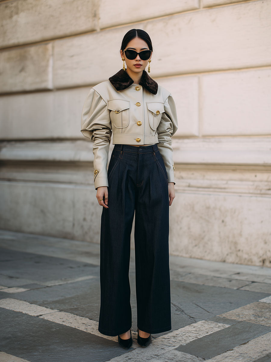 • Pinch Pleated Detail: The unique pinch pleats add texture and depth, setting these jeans apart with a contemporary twist.