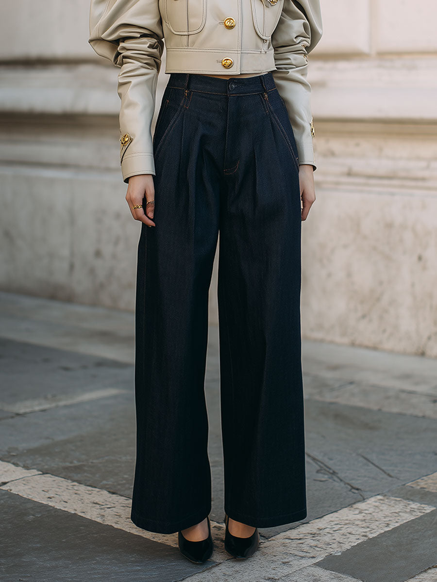Minimalist High-waist Pinch Pleated Baggy Jeans