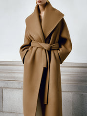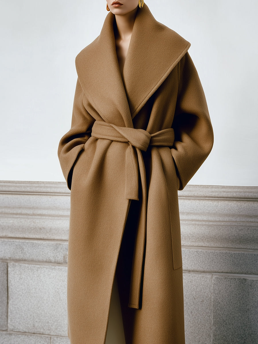 Minimalist Wide Shawl Collar Wool Mid-length Coat