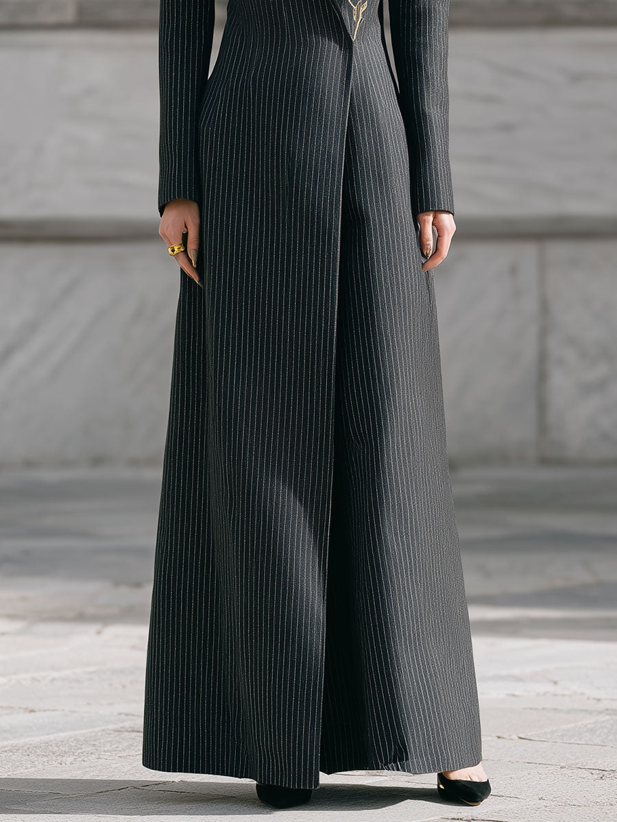 For a classic look, pair the "Old Money Style Striped Rose Embroidered Long Coat" with a simple blouse and straight-leg trousers. Add a pair of loafers or ankle boots to complete the ensemble. For a more casual vibe, team it with jeans and a turtleneck sweater, and finish the look with sneakers or chic boots.