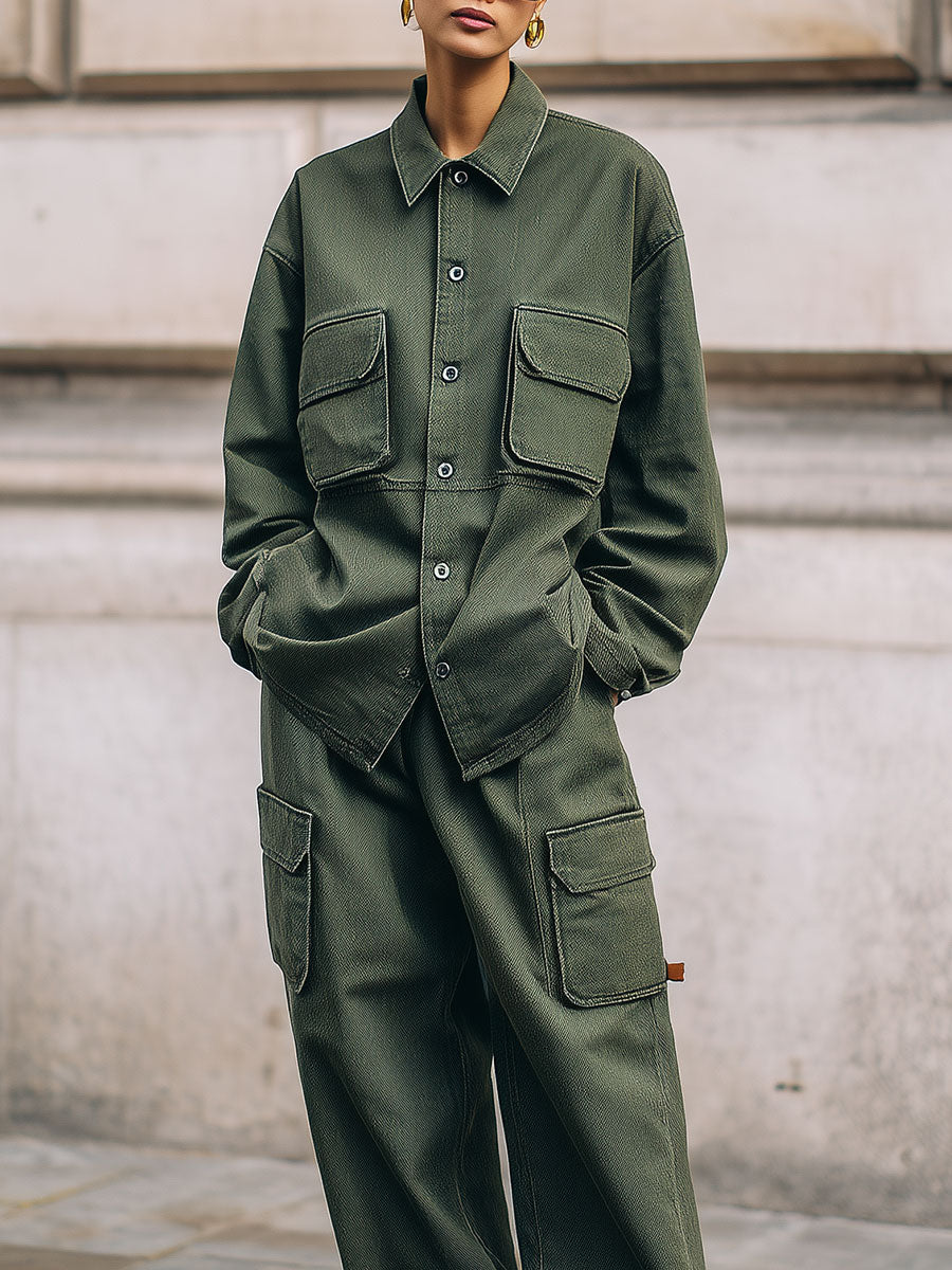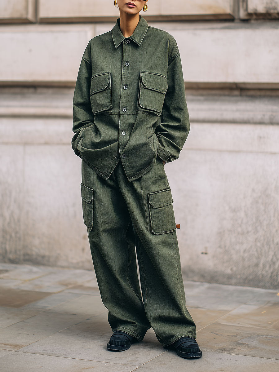 The Stylish Washed Denim Flap Cargo Pocket Jacket & Jeans Set is a chic and versatile outfit for contemporary fashion enthusiasts. Made from premium quality denim fabric, this set seamlessly combines comfort and style, making it suitable for various occasions.